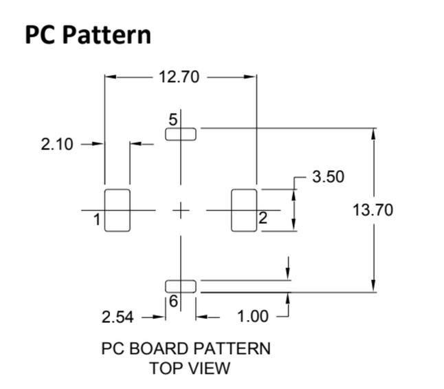 Inductance, pin 5 to 6: at 100 kHz and 0.02 VRMS, 10.29 mH ±25%